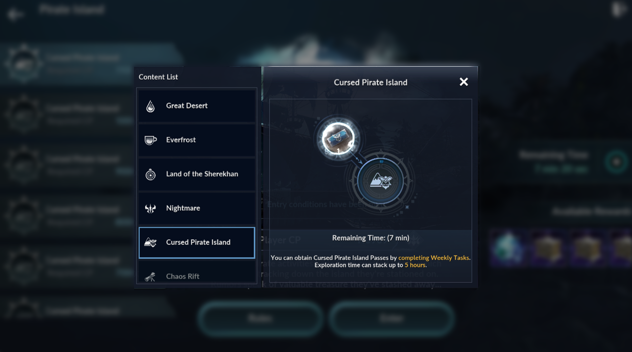 - Using the item "Cursed Pirate Island Pass" grants you 20 minutes of exploration time in the Cursed Pirate Island.