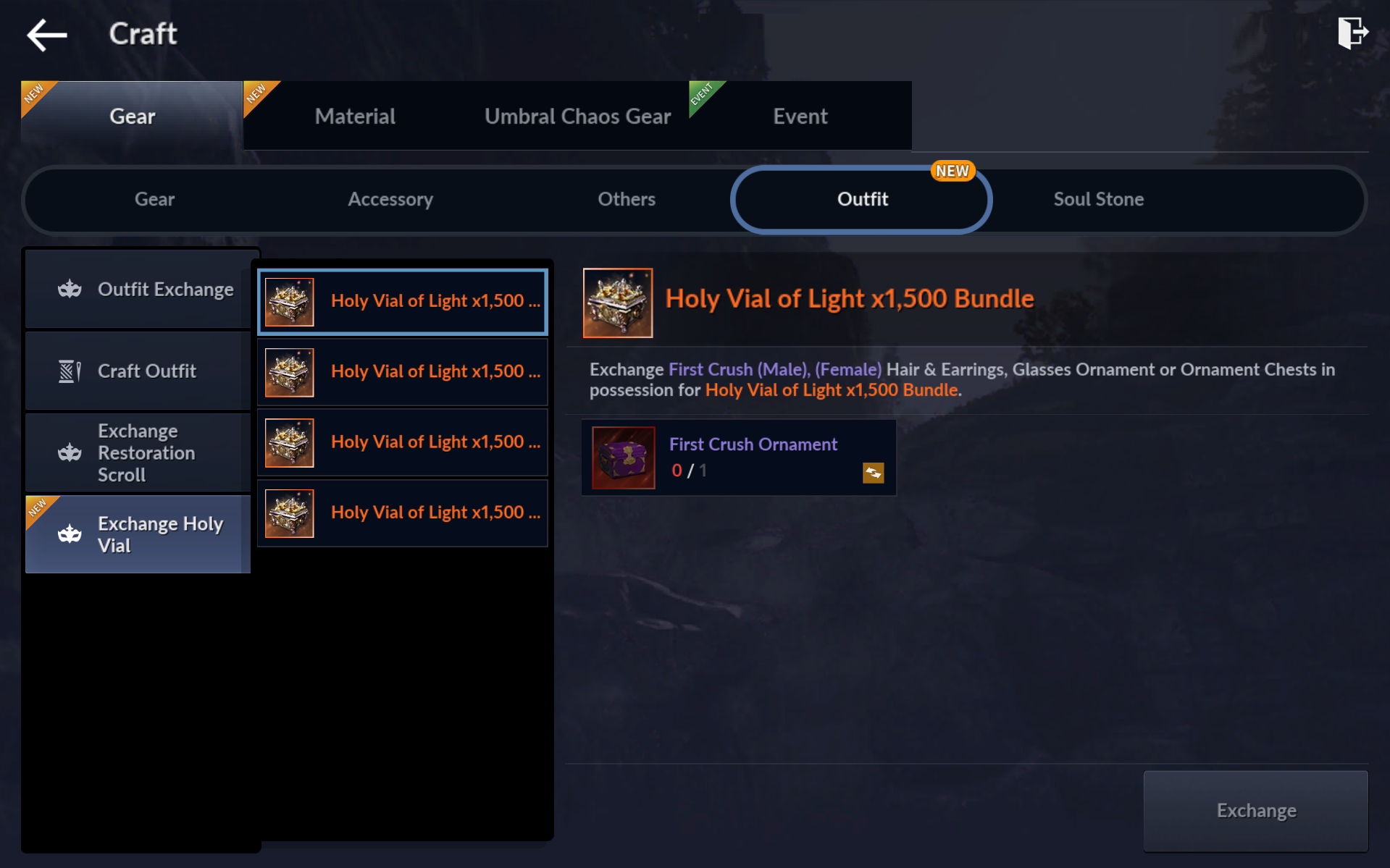 - Added recipes to disassemble Encarotia's Boutique Ornaments for Holy Vials of Light under [Menu] - [Craft] - [Gear] - [Outfit] - [Exchange Holy Vial].